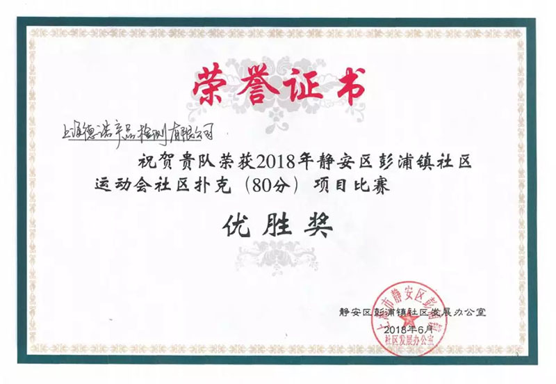 2018年6月9日下午,由上海市靜安區(qū)彭浦鎮(zhèn)社區(qū)發(fā)展辦公室主辦的“2018年靜安區(qū)彭浦鎮(zhèn)社區(qū)運動會開賽式暨社區(qū)撲克(80分)項目比賽”在靜安區(qū)彭浦鎮(zhèn)社區(qū)文化活動中心舉行,來自鎮(zhèn)各社區(qū)、學校、企業(yè)的近百名人員參加了此次大賽。我公司的茅震峰和顧丹君從眾多支參賽隊伍中脫穎而出,最終榮獲優(yōu)勝獎。