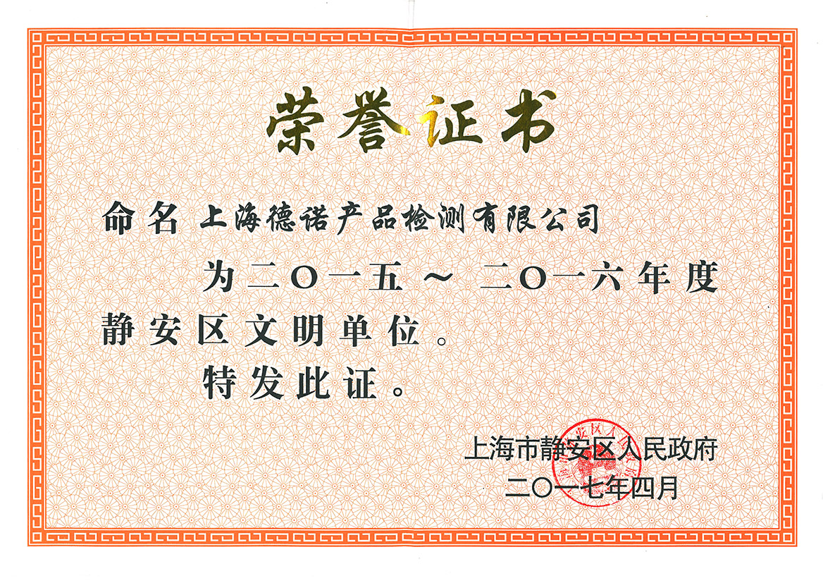 2017.4 二〇一五~二〇一六年度靜安區(qū)文明單位稱號(hào) |