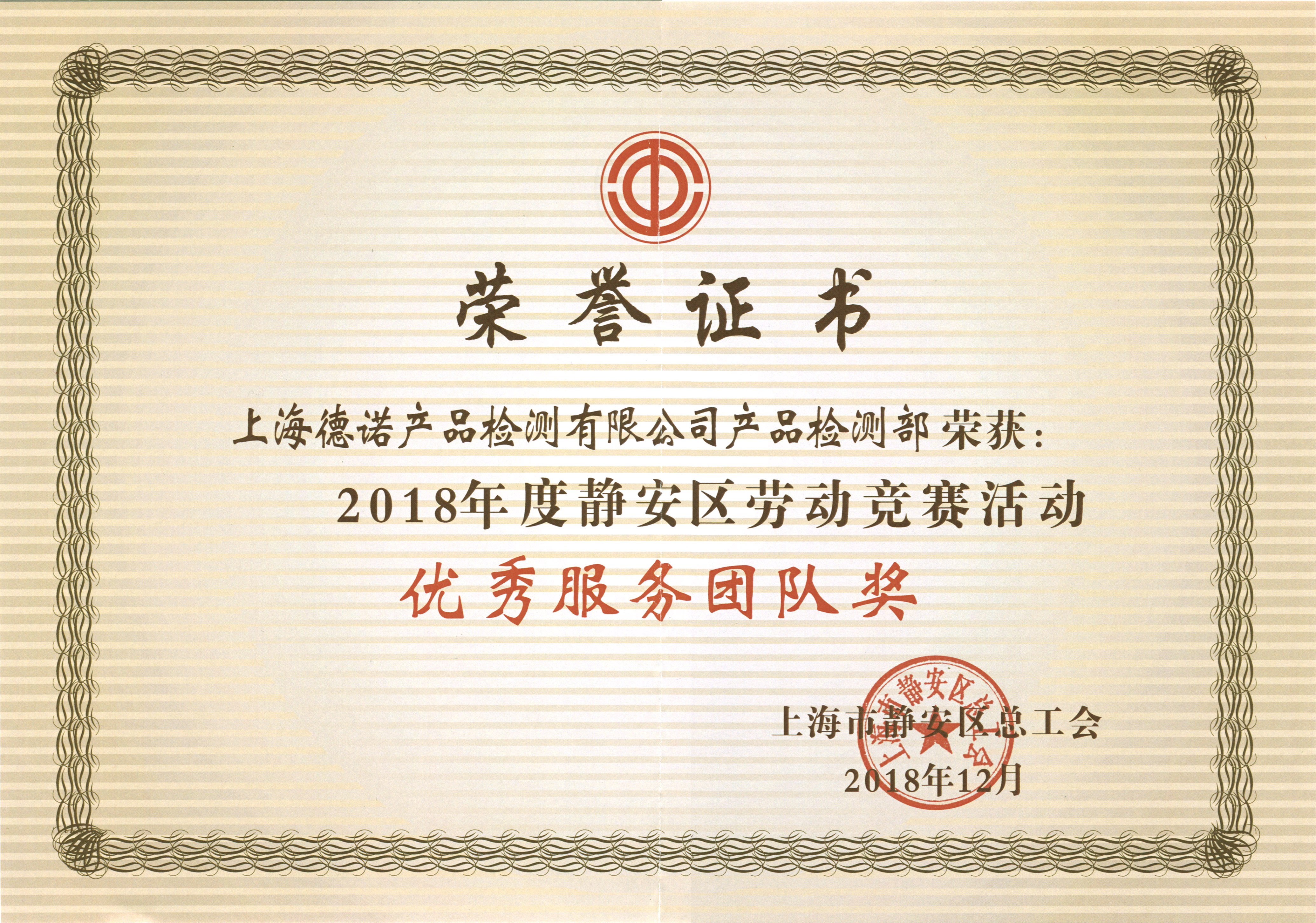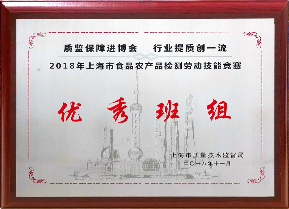 2018.11 2018年上海市食品農(nóng)產(chǎn)品檢測(cè)勞動(dòng)技能競(jìng)賽優(yōu)秀班組 |
