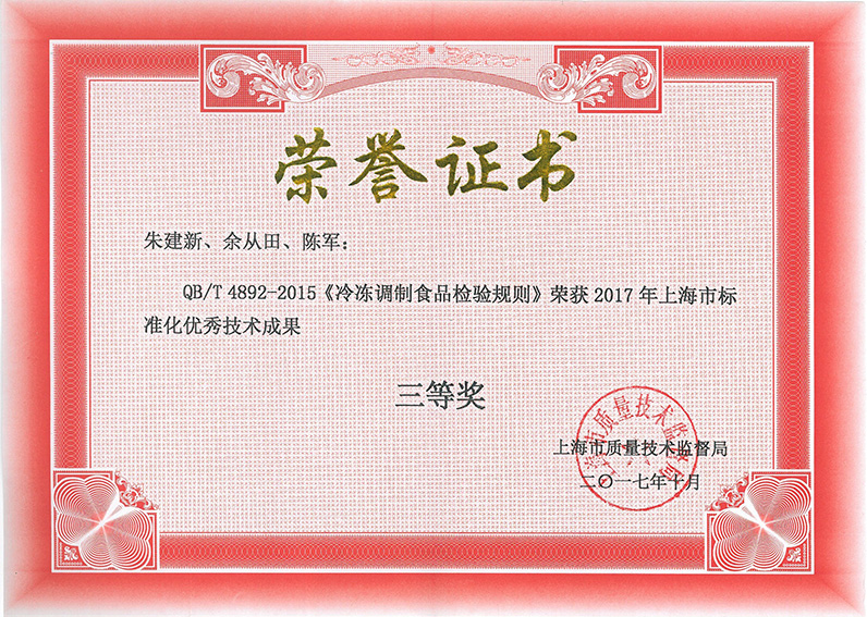 2017.12 2017年上海市標(biāo)準(zhǔn)化優(yōu)秀技術(shù)成果獎(jiǎng)三等獎(jiǎng) |